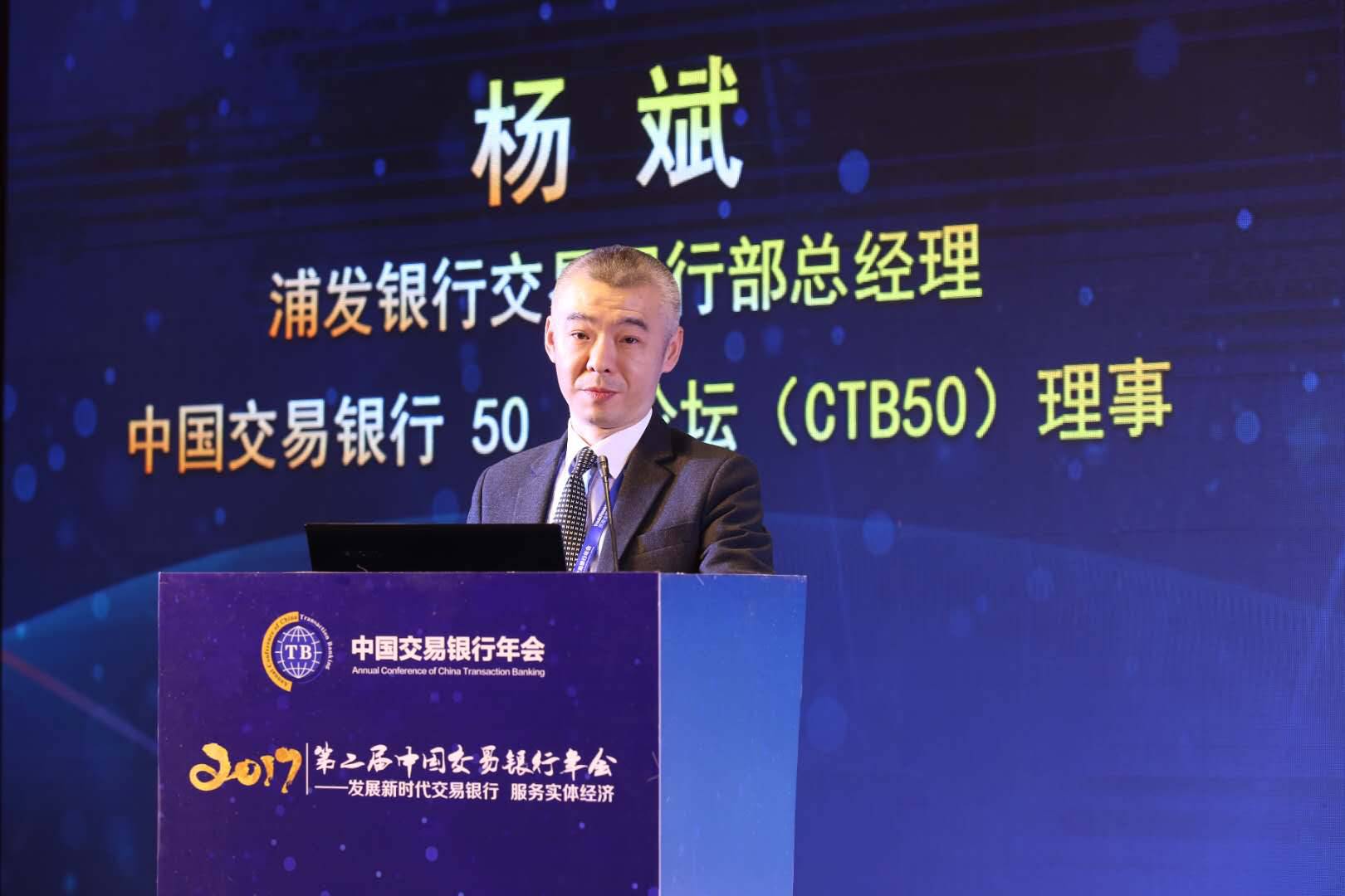 浦发银行交易银行部总经理、中国交易银行50人论坛(CTB50)理事杨斌