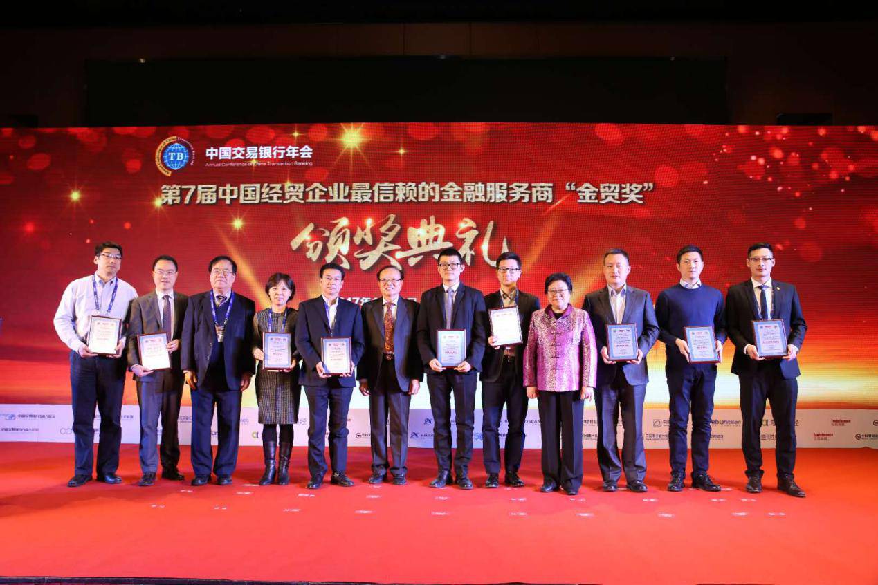 2017年12月6日,在全国金融工作会议和十九大的大背景下,以题为“发展新时代交易银行 服务实体经济”的第二届中国交易银行年会暨第7届中国经贸企业最信赖的金融服务商“金贸奖”颁奖典礼在北京金融街洲际酒店圆满落幕。本次年会由《贸易金融》杂志、中国贸易金融网、环球交易银行网主办,中国银行、平安银行、中信银行联合主办,中国交易银行50人论坛、中国供应链金融产业生态联盟协办,北京财资和供应链应用技术研究院承办,并与北京银行、上海文沥信息技术有限公司达成战略合作。